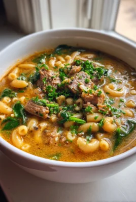 Hearty Beef Macaroni Soup with White Beans & Spinach
